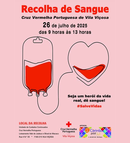 No próximo dia 26 JULHO (sábado), terá lugar a próxima RECOLHA DE SANGUE do ano, nas instalações da Unidade de Cuidados Continuados/Clínica da Cruz Vermelha Portuguesa, entre as 9h00 e as 13h00