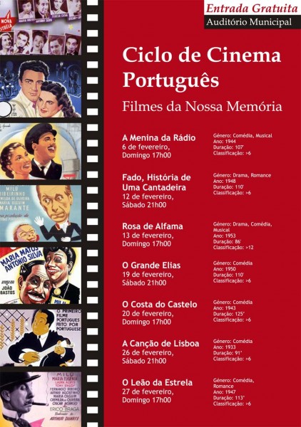 No Auditório Municipal de Reguengos de Monsaraz, vai decorrer durante o mês de Fevereiro um Ciclo de Cinema Português conforme cartaz abaixo publicado.