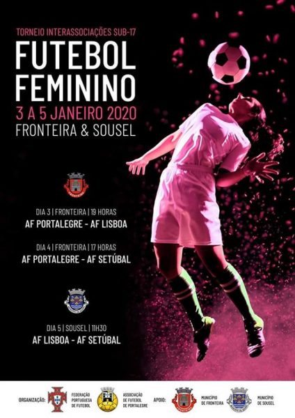 É com muito agrado que o Município de Sousel é parceiro do grandioso Torneio Interassociações Sub-17 de Futebol Feminino. Este é promovido pela Federação Portuguesa de Futebol, com a colaboração da Associação de Futebol de Portalegre. Decorrerá entre os dias 3 e 5 de janeiro, em Sousel e Fronteira e irá contar com a participação das seleções distritais de Lisboa, Setúbal e Portalegre.