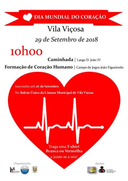 É justamente com este propósito que a Câmara Municipal de Vila Viçosa, em parceria com a Unidade de Cuidados na Comunidade – Centro de Saúde de Vila Viçosa e a Fundação Portuguesa de Cardiologia, vai organizar uma caminhada, com concentração pelas 10 h 00, no Largo D. João IV de Vila Viçosa, seguida da formação de um coração humano no Campo de Jogos João Figueiredo.
