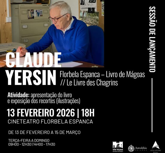 O Município de Vila Viçosa informa que, irá decorrer a Inauguração da Exposição “Poesia e Papel Recortado”, seguido da Apresentação do Livro Florbela Espanca – Livro de Mágoas” da autoria de Claude Yersin, no próximo dia 13 de fevereiro (sexta-feira), pelas 18h00, na Galeria de Arte do Cineteatro Florbela Espanca em Vila Viçosa.