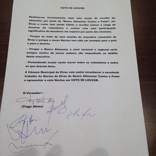 Apresentado pelo Vereador Tiago Abreu e subscrito por todos os vereadores da Câmara Municipal de Elvas fora atribuídos louvores à atleta Raquel Trabuco e ao Núcleo de Elvas do Banco Alimentar contra a fome .
